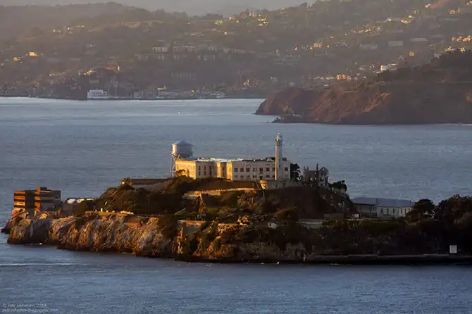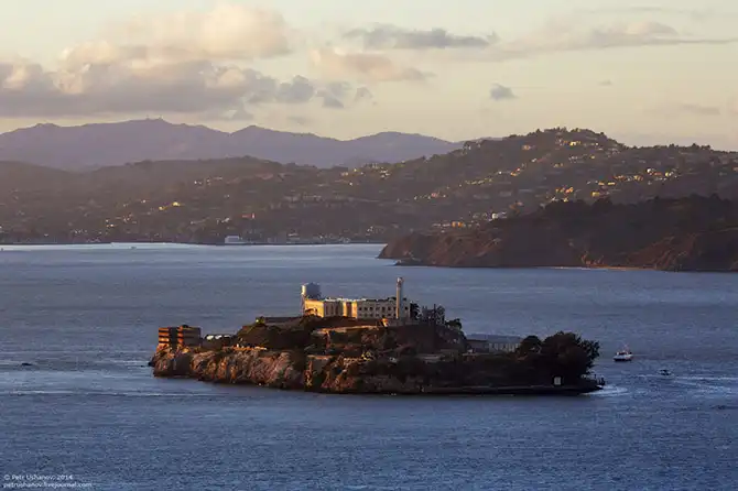 С острова Йерба Буэна оказался неплохой вид на мост «Золотые Ворота» на закате.