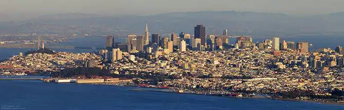 Вид на Даунтаун с холма на северной стороне моста Золотые Ворота:
