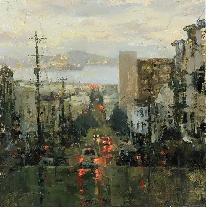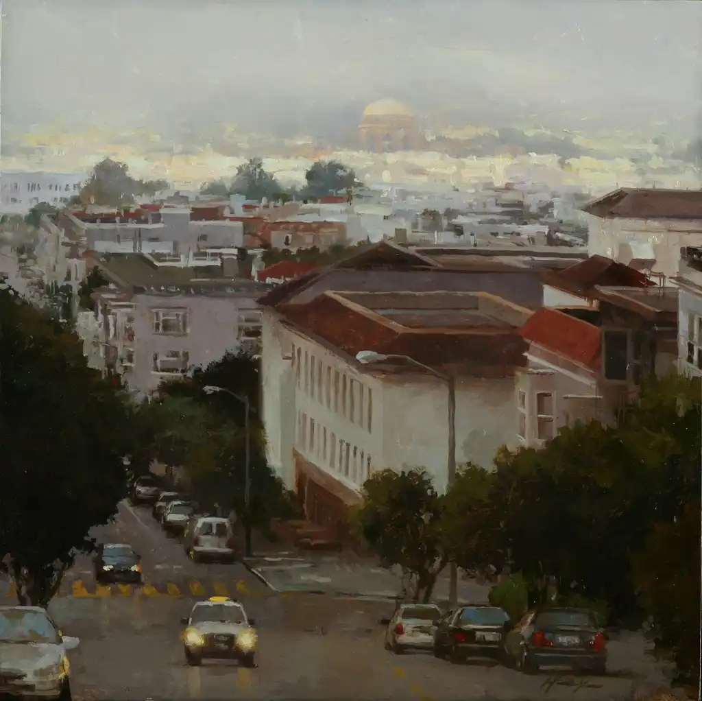Двадцатипятилетний художник Hsin-Yao Tseng родился на Тайване, два года назад получил степень бакалавра в Академии Искусств в Сан-Франциско. И как прилежный все еще студент, он пишет одни и те же места Сан-Франциско, города, в который он очевидно влюблен. Пишет все больше в «режимном свете» — на рассвете и закате.