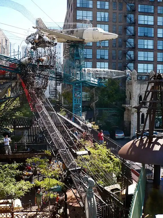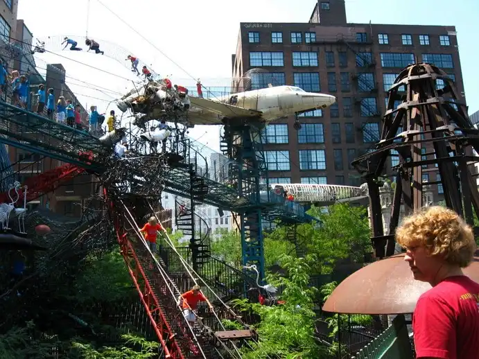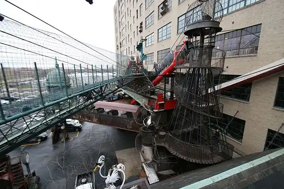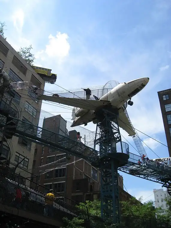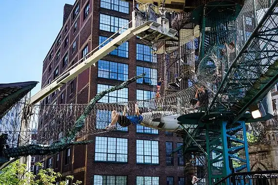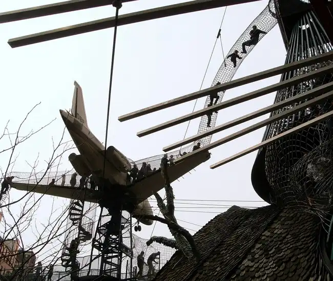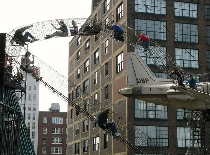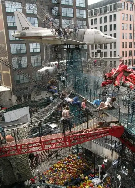 На игровой площадке MonstroCity при городском музее Сент-Луиса есть все, что может быть интересно детям и не только. Два настоящих фюзеляжа самолетов, подвешенных высоко над землей, огромное число подвесных ходов и лазов, пожарная машина, замок и много еще чего интересного. На фоне такого веселья поход в музей кажется еще менее привлекательным занятием.