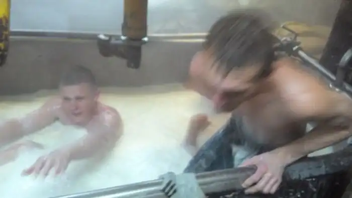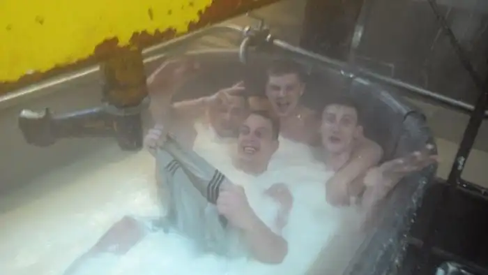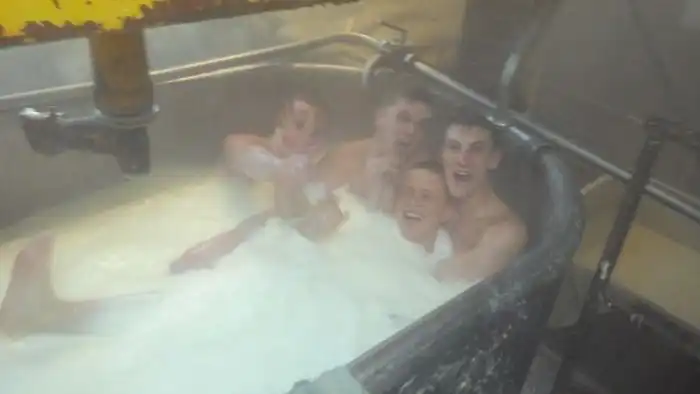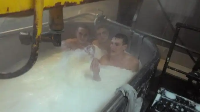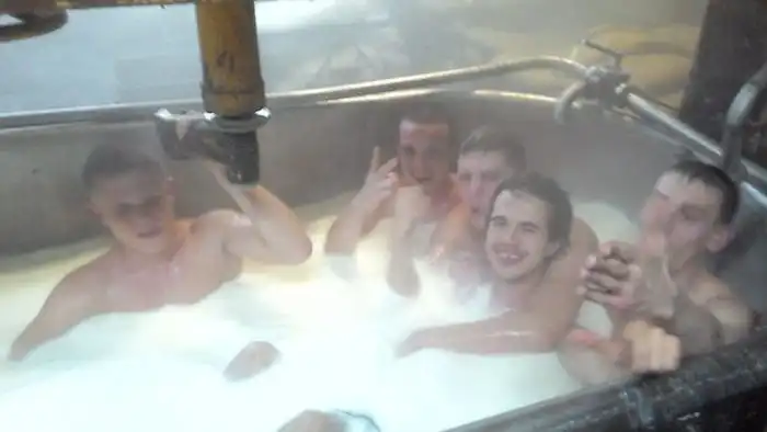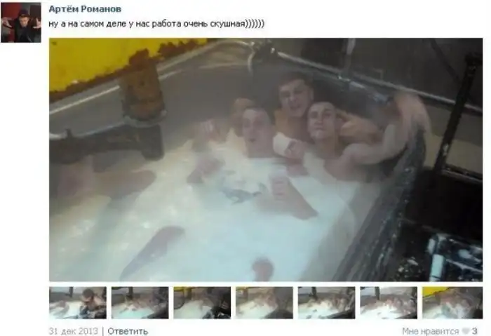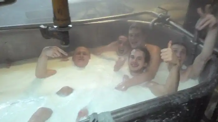 Судя по фотографиям, которые выложил в социальную сеть один из сотрудников омский заводов, производящих сыр-косичку, их коллектив очень необычно отметил новогодний корпоратив. На фотографиях отчетливо видно, как группа подвыпивших сотрудников предприятия принимает ванну в емкости для изготовления продукта, заполненной молочной жидкостью. Как вы уже могли понять, именно в этой ванной на предприятии производится "фирменный" сыр-косичка, которая до обнародования этой новости была весьма популярным продуктом.