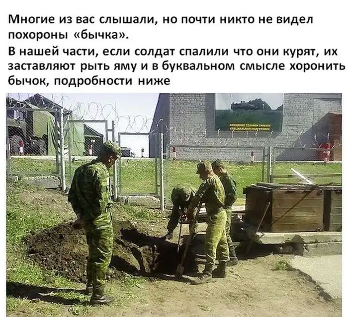 Думаю, многие из вас слышали о традиции "похорон бычка", которые устраивают солдаты во время службы в армии. Для чего это делается? На самом деле, все очень просто - чтобы отучить солдат выкидывать окурки сигарет куда попало, а не в урну.