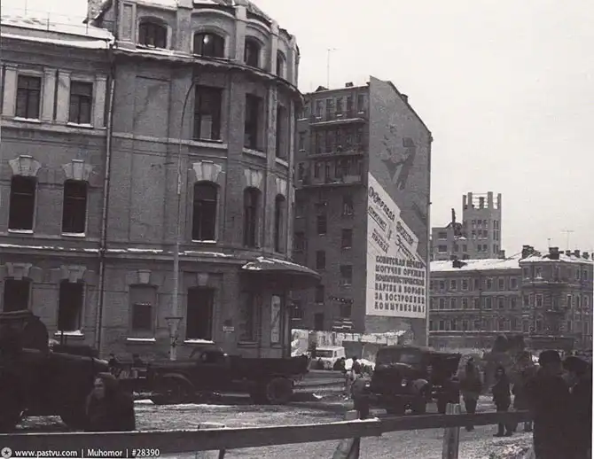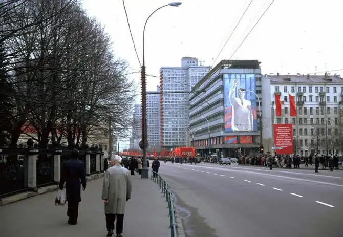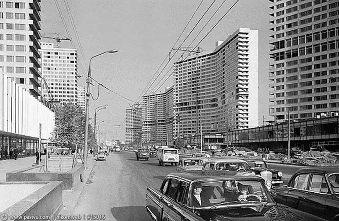 Особенно поражало воображение соседство старой церквушки с красивейшим, современным небоскрёбом. С одной стороны вызывало недоумение зачем вообще было оставлять какую то церквушку, но с другой стороны, это подчёркивало грандиозность и масштаб преобразований. Многие советские фото- и просто художники обожали этот ракурс. Мне то, школьнику, простительно, но им?