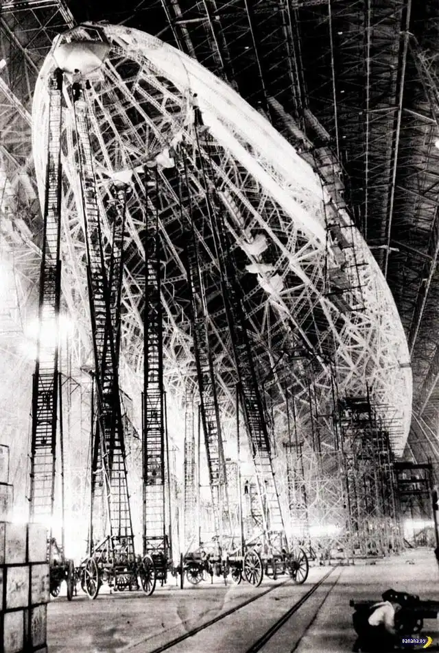 Для создания дирижабля LZ-127 Graf Zeppelin приходилось использовать пожарные телескопические лестницы, на которых работали рабочие.