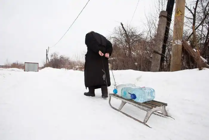 А это Маргарита Кузьминична. Работала учителем младших классов. В свои 86 лет вынуждена ходить за водой к колонке.