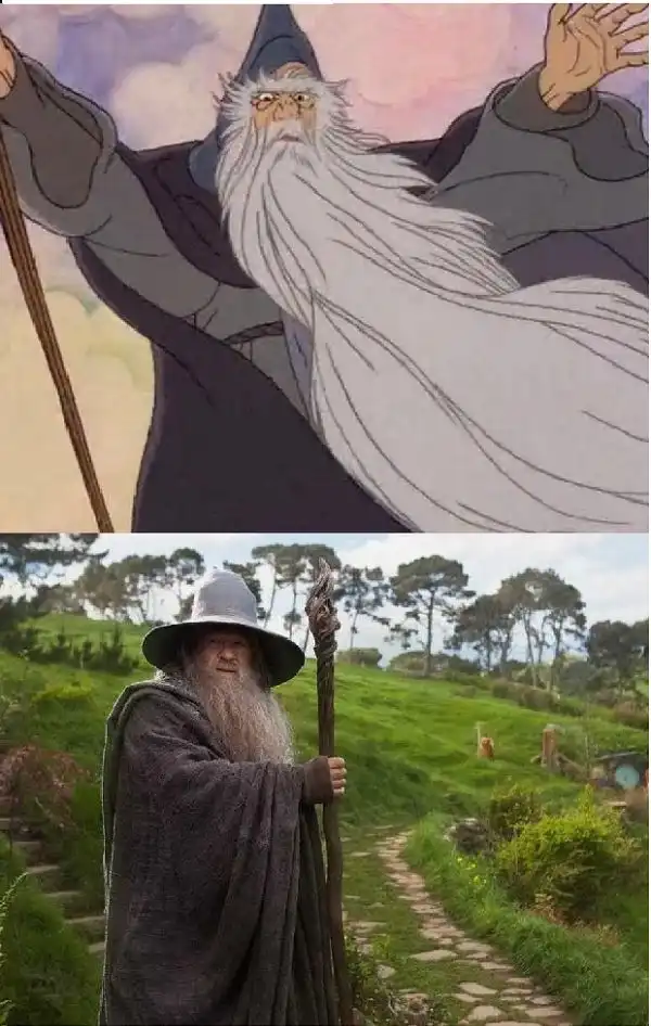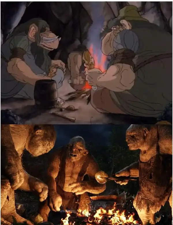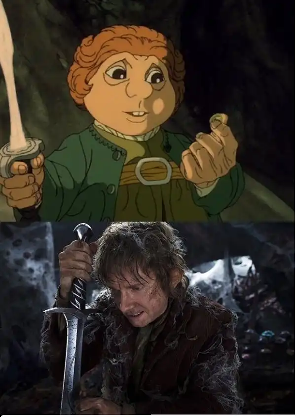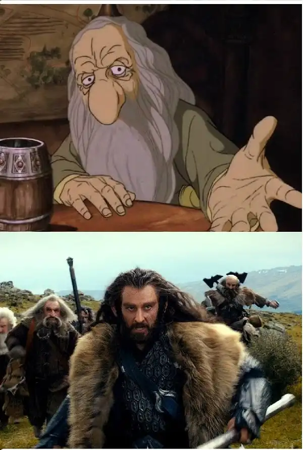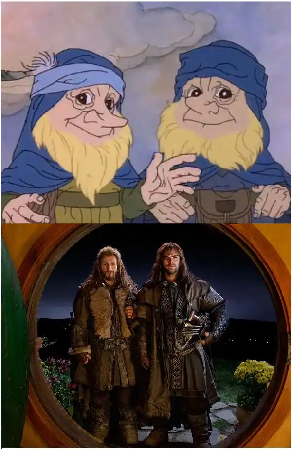 Отличные сравнительные фотографии и скриншоты персонажей произведения "Хоббит", созданные в 1977 и 2012 годах.
