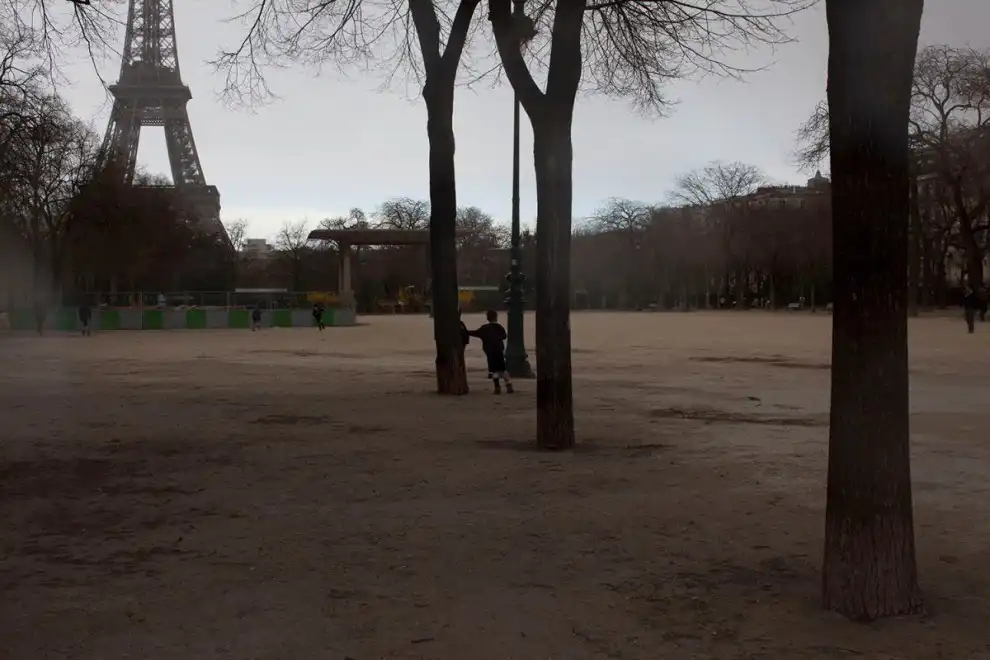 Ветер поднимает пыль на Марсовом поле, 20 марта 2014 года.