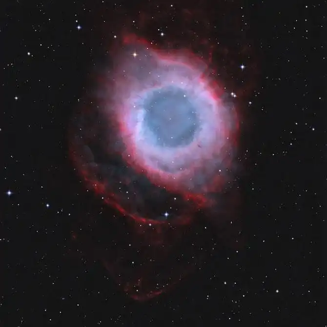 Примерно в 7 сотнях световых лет от нас в созвездии Водолея умирает звезда, похожая на Солнце. Одна из самых близких планетарных туманностей. Открыта Карлом Людвигом Хардингом в 1824 году. В связи с характерным видом пользователи Интернета и журналисты окрестили этот космический объект как «Око Бога» или «Глаз Бога». Туманность «Улитка» зародилась благодаря окончанию «жизненного пути» звезды главной последовательности, подобной Солнцу. Сейчас на её месте остался лишь белый карлик.