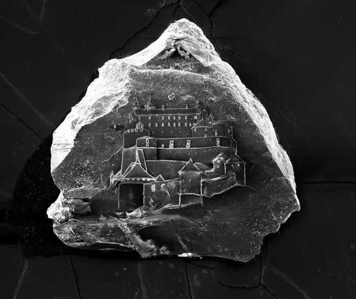 Этот удивительный рисунок сделан на крохотной песчинке, а если быть точнее - на одной грануле песка. Для этого художнику понадобился специальный микроскоп с внушительным увеличением.