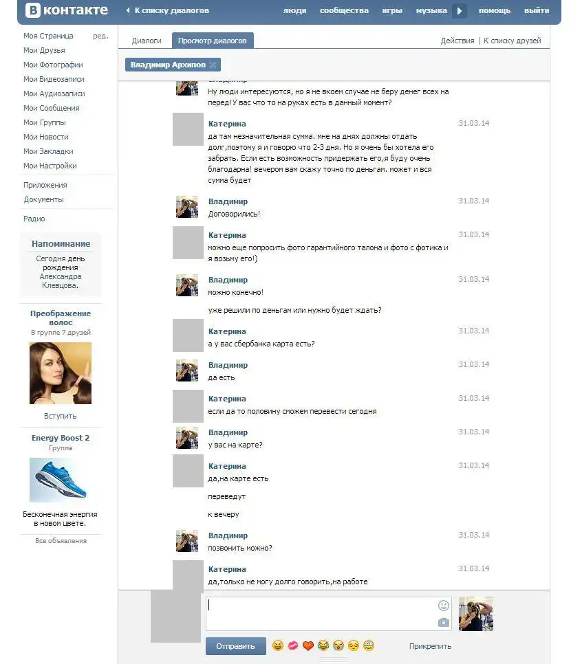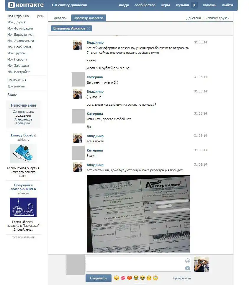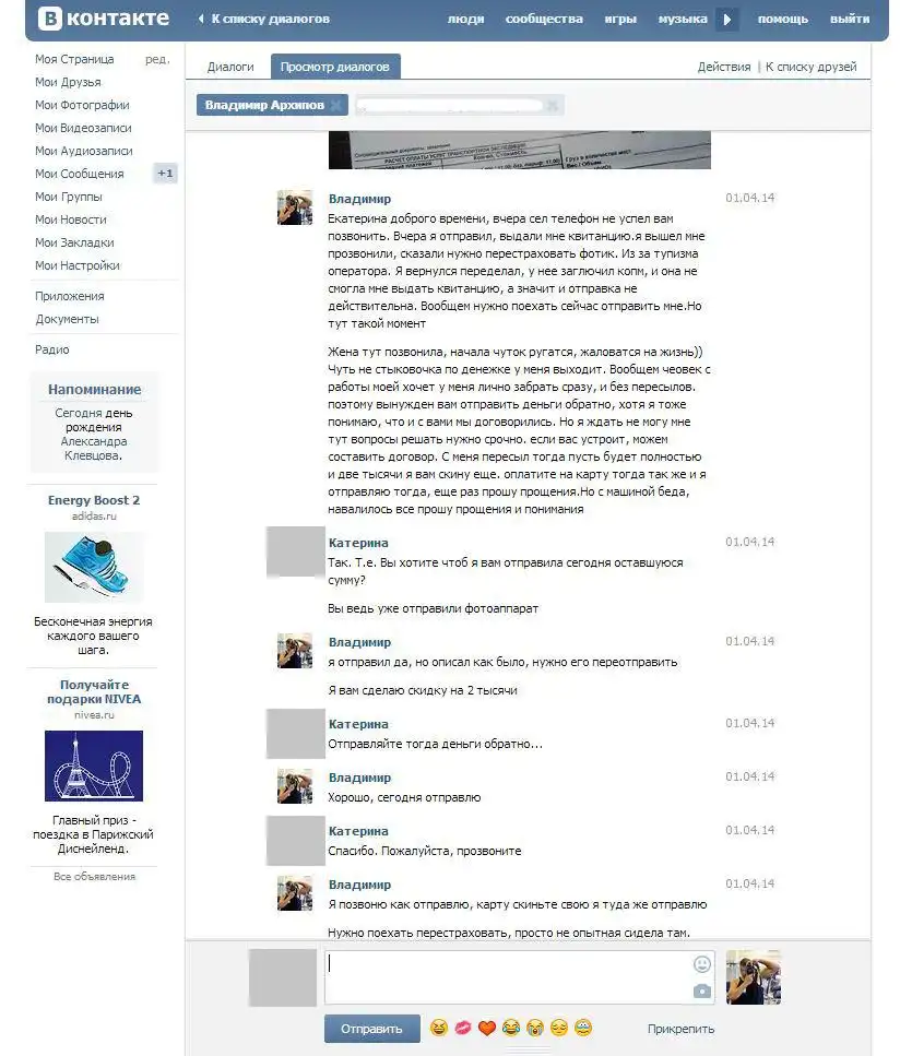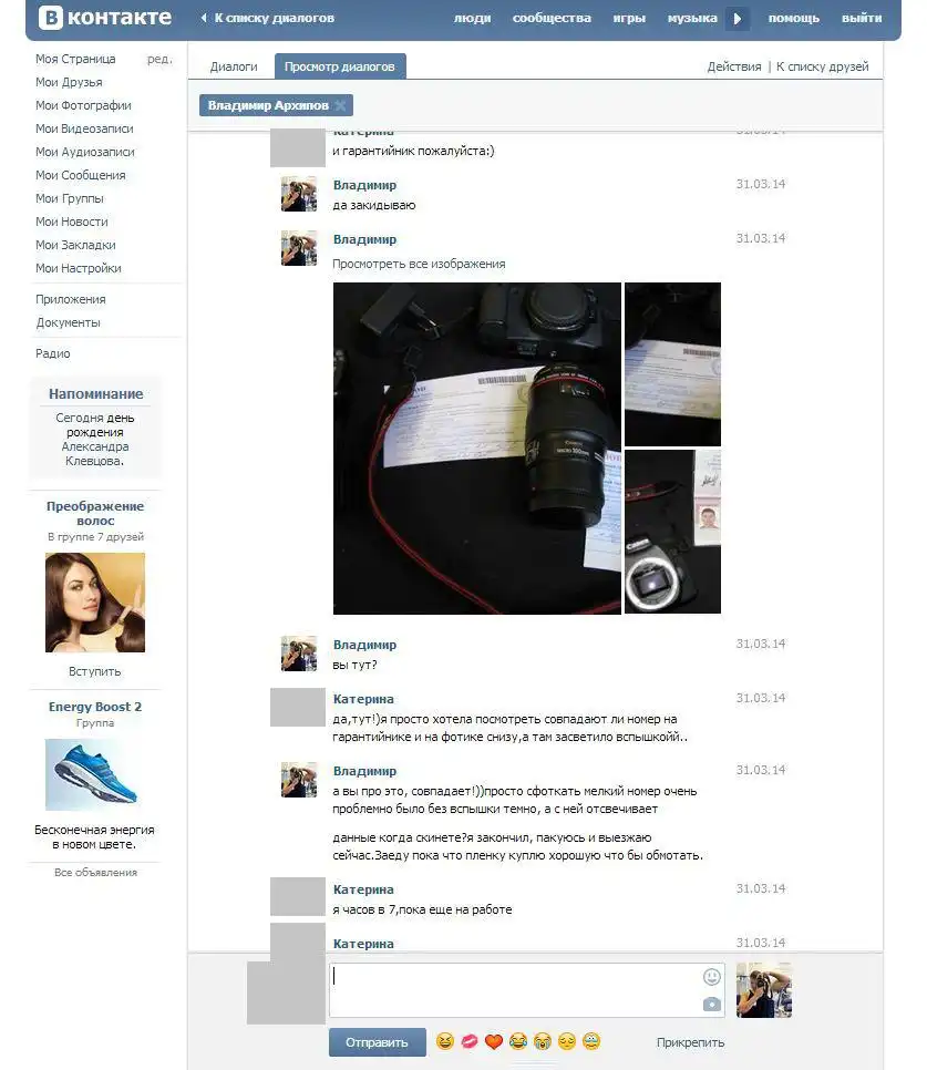 Не давно пыталась купить фотоаппарат у человека из другого города, увидела его объявление в группе вконтакте, списались,