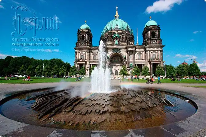 Прямо перед кафедральным собором находится парк Lustgarten, представляющий собой зелёную лужайку с газоном, в центре которой находится фонтан. Но так было не всегда.