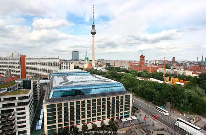 Телебашня Берлина — главная доминанта города и самое высокое сооружение Германии. На смотровую площадку, которая находится внутри шарика, мы с вами ещё поднимемся. Попозже.