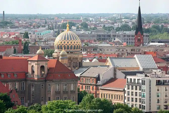 А это круглый купол Новой синагоги, построенной в 1859–1866 годах на улице Оранинбургер в районе Митте. Главная синагога, между прочим, Берлинской еврейской общины.