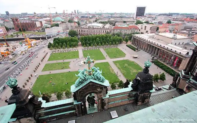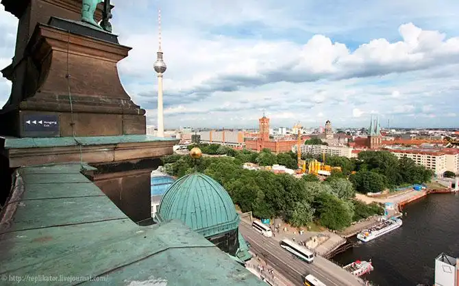 Сегодня мы посмотрим на Берлин с высоты одного из красивейших сооружений столицы Германии — Берлинского кафедрального собора (Berliner Dom). За почти неделю, проведённую в прогулках, проездах и пробегах по Берлину, симпатичней сооружения там я не встречал.