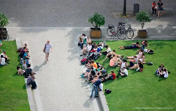В тёплый солнечный день приятно поваляться на травке в парке Люстгартен перед собором: