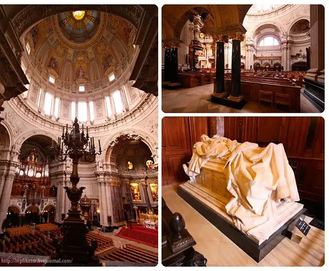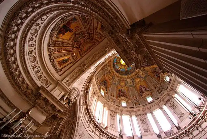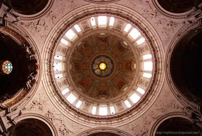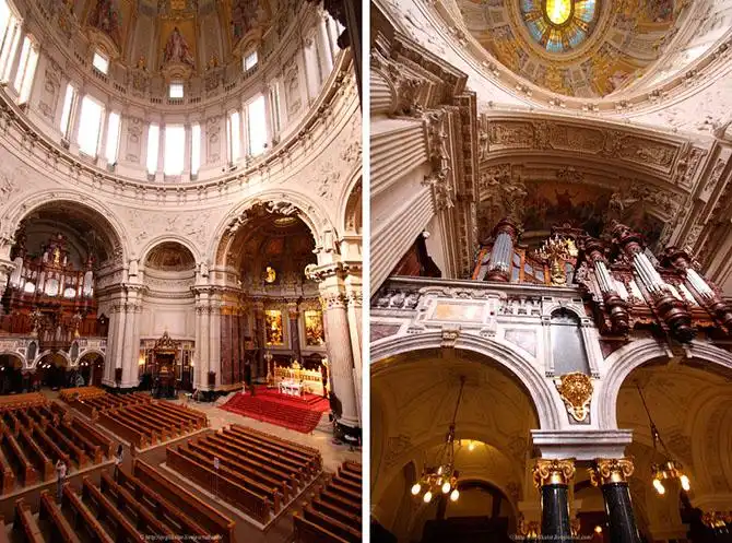 Берлинский кафедральный собор — самая большая протестантская церковь Германии, выполнен в стиле барокко и строился 11 лет, с 1894 по 1905 год. Внутри собор впечатляет так же, как и снаружи.