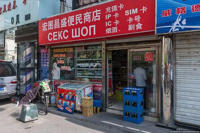 Секс-шоп. Почему-то в китайском секс-шопе продают алкоголь. У меня два объяснения этому: либо китайцы думают, что для хорошего секса ничего, кроме алкоголя не нужно, либо бутылки предлагается использовать не по назначению.