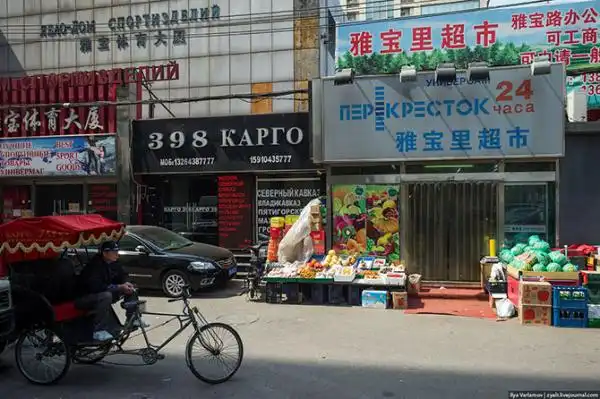 Нашел в Пекине замечательно место – Яболоу (Ябала), большой квартал для челноков. Огромные торговые центры с шубами, пуховиками, всевозможными тряпками и другим барахлом. По улицам ходят наши соотечественники и закупаются тряпками, которые потом заполняют вещевые рынки по всей России. Здесь все продавцы говорят по-русски, повсюду вывески на русском языке, а в некоторых местах можно даже расплачиваться рублями.