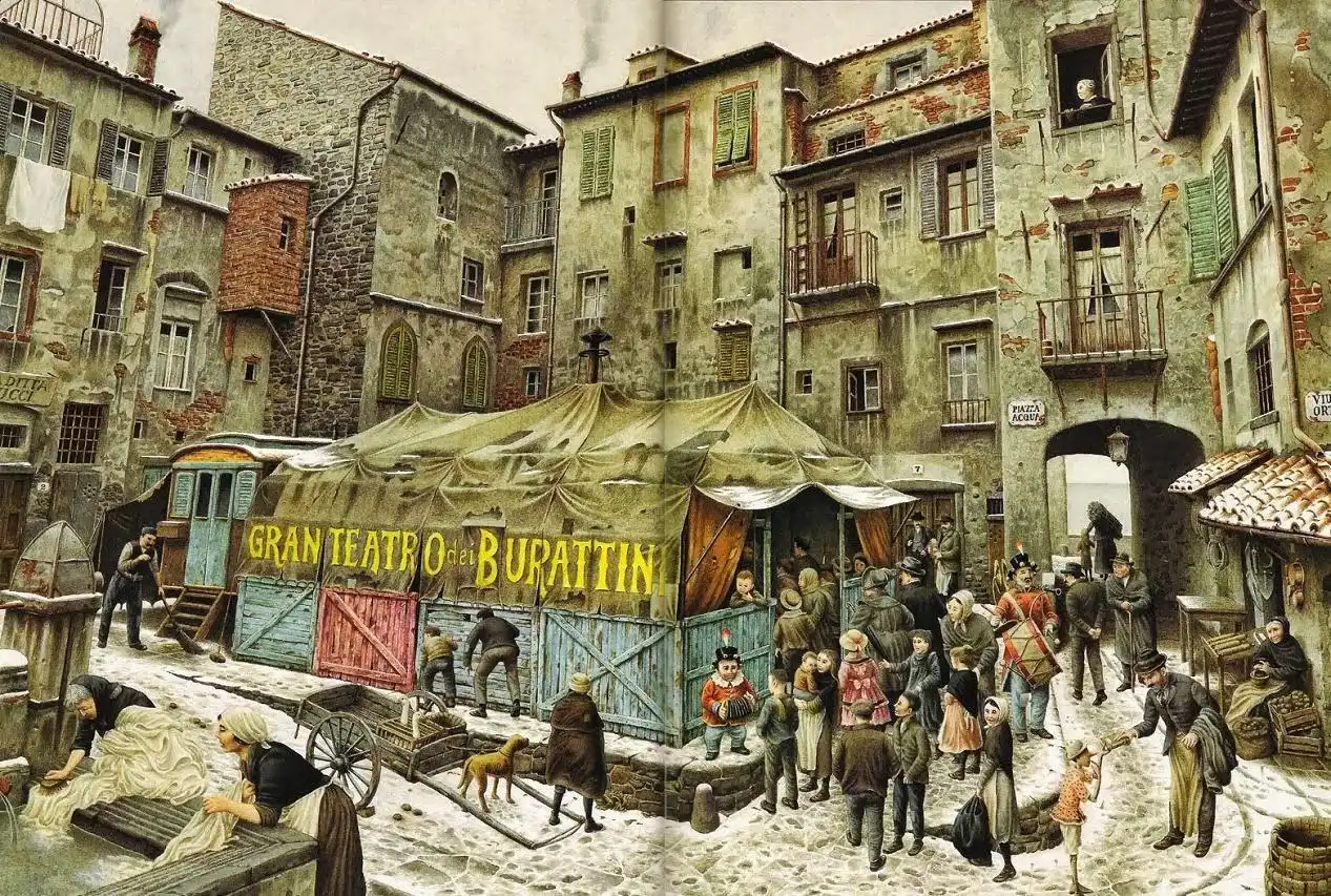 Роберто Инноченти родился недалеко от Флоренции в 1940 г. и впервые соприкоснулся с миром искусства в возрасте одиннадцати лет. Он начал экспериментировать с красками во время работы ассистентом в магазине и с этого момента стал «художником всеми фибрами своего существа». В конце 1950-х Роберто отправился в Рим, где работал в студии анимационных фильмов, делал иллюстрации для журналов и разрабатывал дизайн плакатов. В возрасте 43 лет он посвятил себя исключительно иллюстрации детских книг.