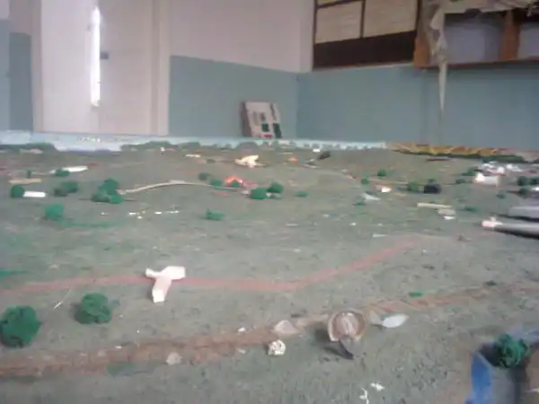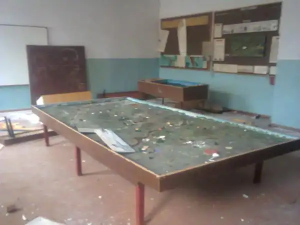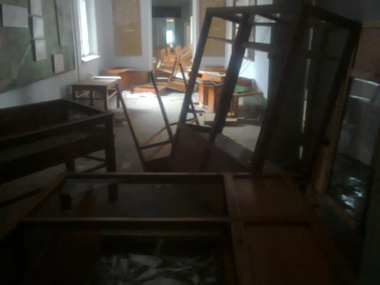 Мебель разломана, стёкла повыбиты. Целого осталось мало чего.