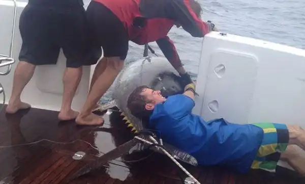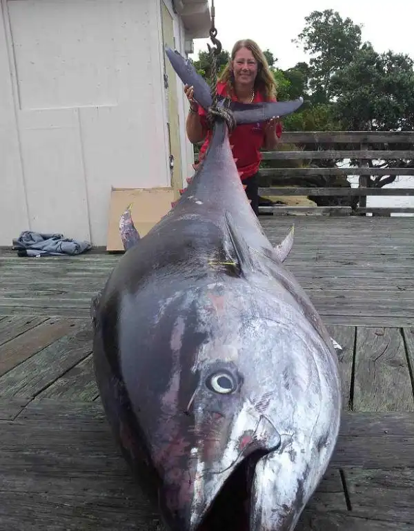 Женщина опередила мужиков, поймав самую большую рыбу! Гигантский тунец весом 411,6 кг был пойман в Новой Зеландии. Донна Паскуа (56 лет) вытащила рыбку, оцененную в $2,02 миллиона.
