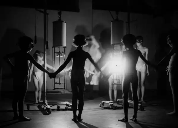 Дети вокруг лампы ультрафиолетового излучения в Институте лучевой терапии.