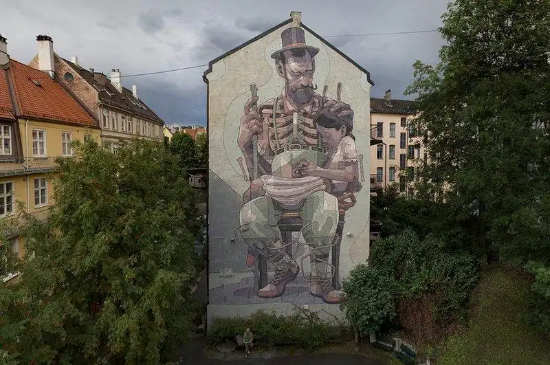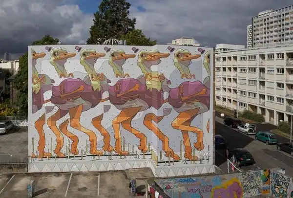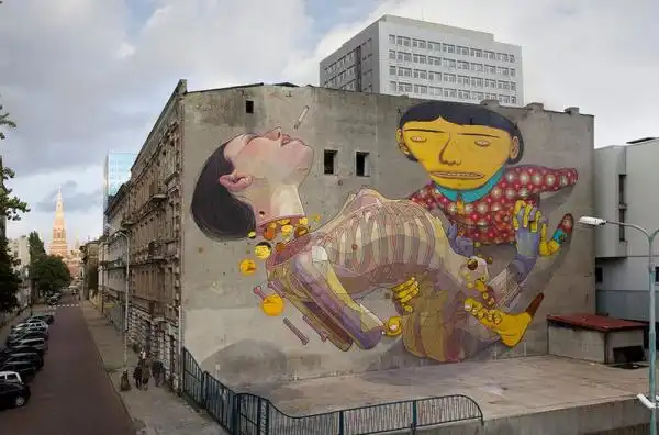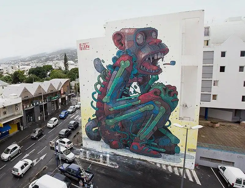 Уличные рисунки Aryz отличаются не только своей масштабностью, но еще и сюрреалистичностью. Его работы достаточно трудно отыскать в многочисленных улочках заброшенных или тихих районов многих европейских городов.