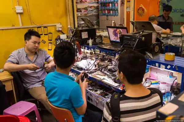 В каждом из этих небоскребов расположены либо рынки электроники, либо офисы торговцев.