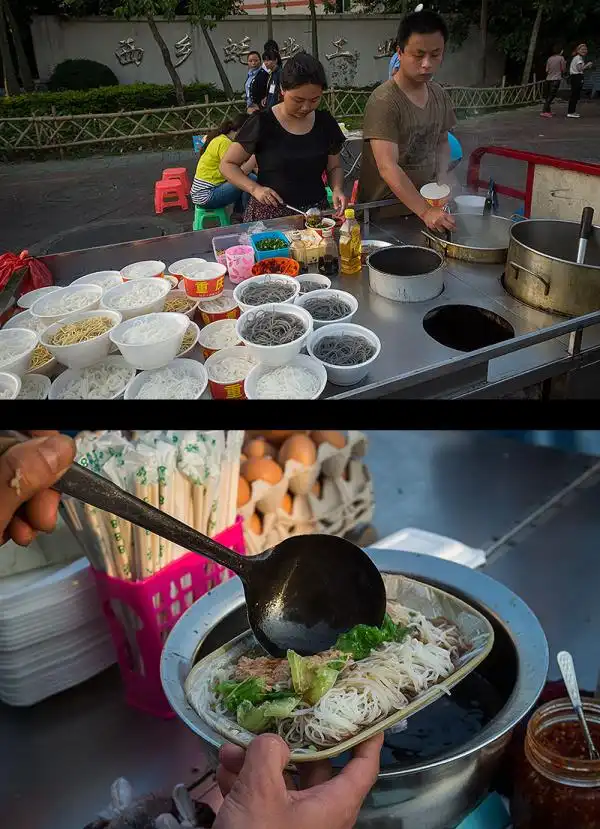 Еще лапша. Еду продают с тележек вдоль дороги.