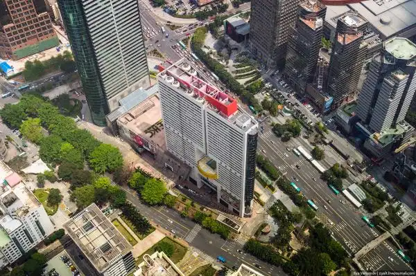 Очень красивый небоскреб Kingkey 100. На крыше находится отель.