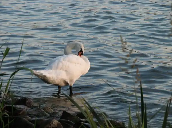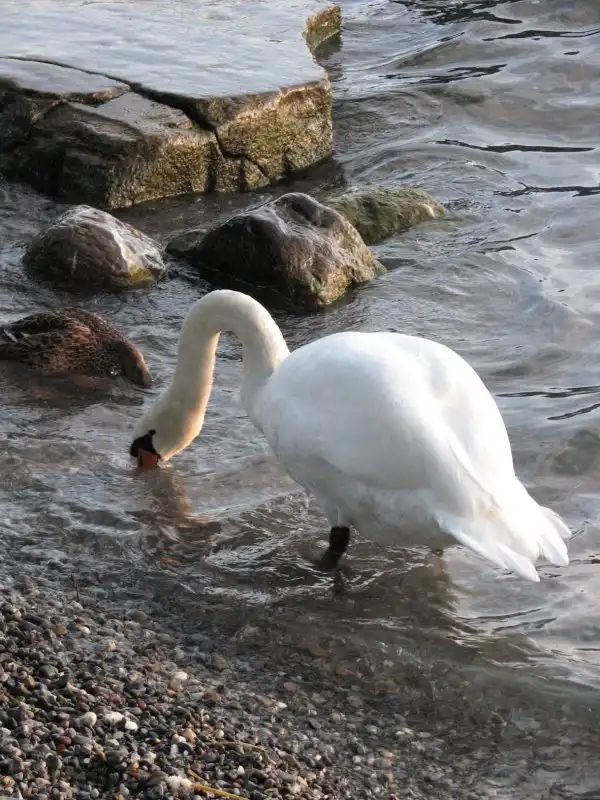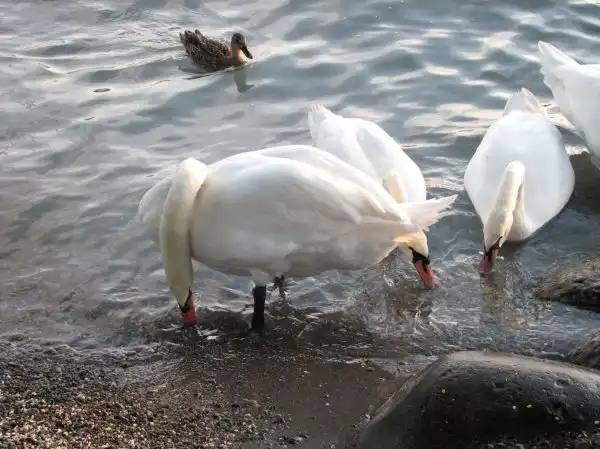 Гуси-лебеди. Кормятся в прибое. Интересные.