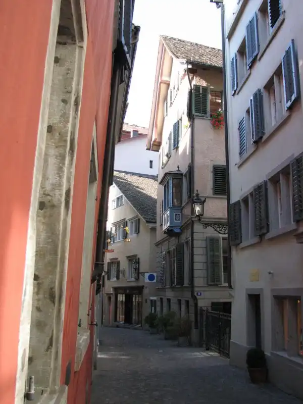 В Цюрихе, как и во многих других Швейцарских городах, много уютных маленьких двориков. Во двориках с видом на другой берег реки собираются под вечер полюбоваться на закат…
