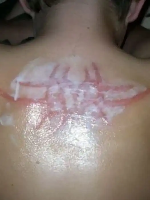 Друзья, хочу вас предупредить ни в коем случае не делать себе временные татуировки в Египте. Все дело в том, что зачастую, местные египетские мастера для таких рисунков на коже используют черную хну, которая вызывает жуткую аллергическую реакцию организма. Таким образом ваше временное тату может превратиться в настоящее шрамирование на всю жизнь. Смотрим далее, что произошло с такими временными тату на теле 16-летнего Лайама и 14-летнего Оуэна, которые с мамой приехали отдыхать в Египет и сделали себе такие рисунки на коже забавы ради.