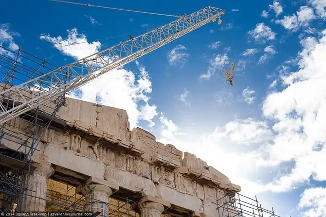 Афина Парфенос, древнегреческая скульптура работы Фидия, когда-то находилась внутри античной постройки.