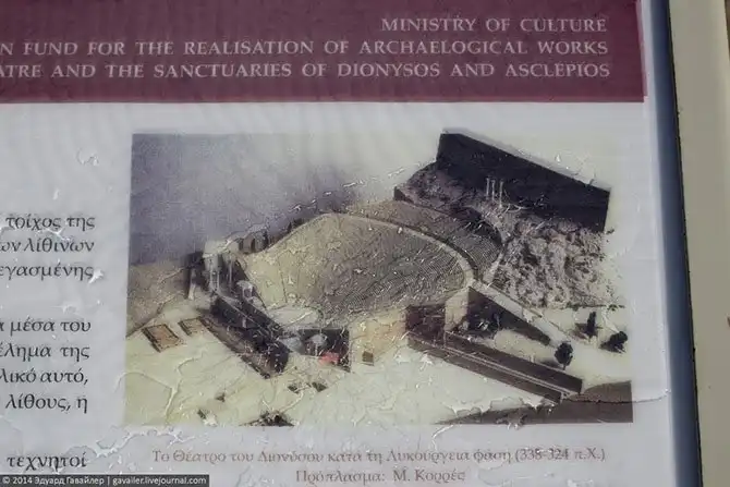 Изначально Театр был построен в 5 в. до н. э. и был деревянным. В 4 веке его перестроили, он стал мраморным.