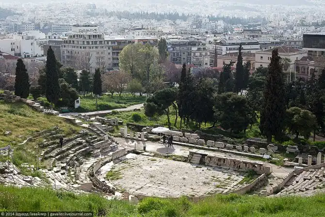 На южном склоне Акрополя очень хорошо сохранился Одеон Герода Аттического.