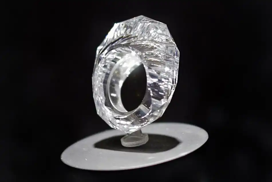 Для превращения драгоценного камня весом в 150 карат в «совершенное сокровище и выражение бесконечной любви», как называет кольцо компания Shawish, прибегли как традиционным методам огранки алмаза, так к высокоточной лазерной резьбе, посредством которой было проделано отверстие для пальца.