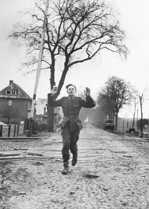 Молодой немецкий солдат сдается в плен Германия, 1945 г.