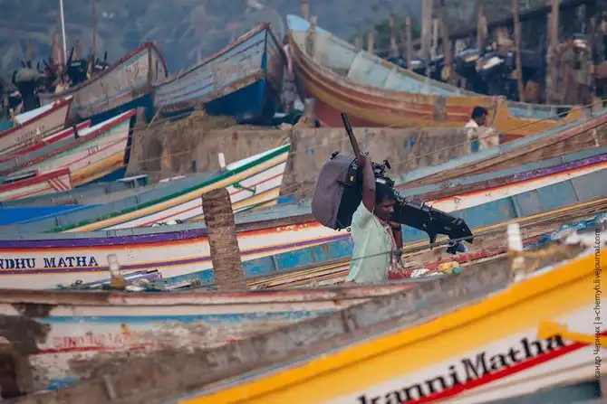 Порт Вижинджам поразительное место, маленькая и очень бедная деревня, рядом с которой стоят три роскошные мечети. Сотни разноцветных лодок с моторами и десятки, связанных из бревен. И абсолютно неповторимая атмосфера.
