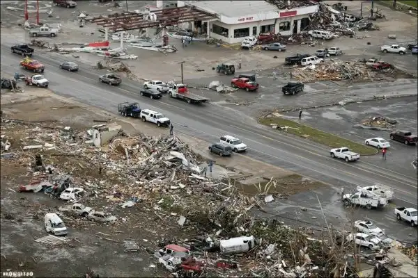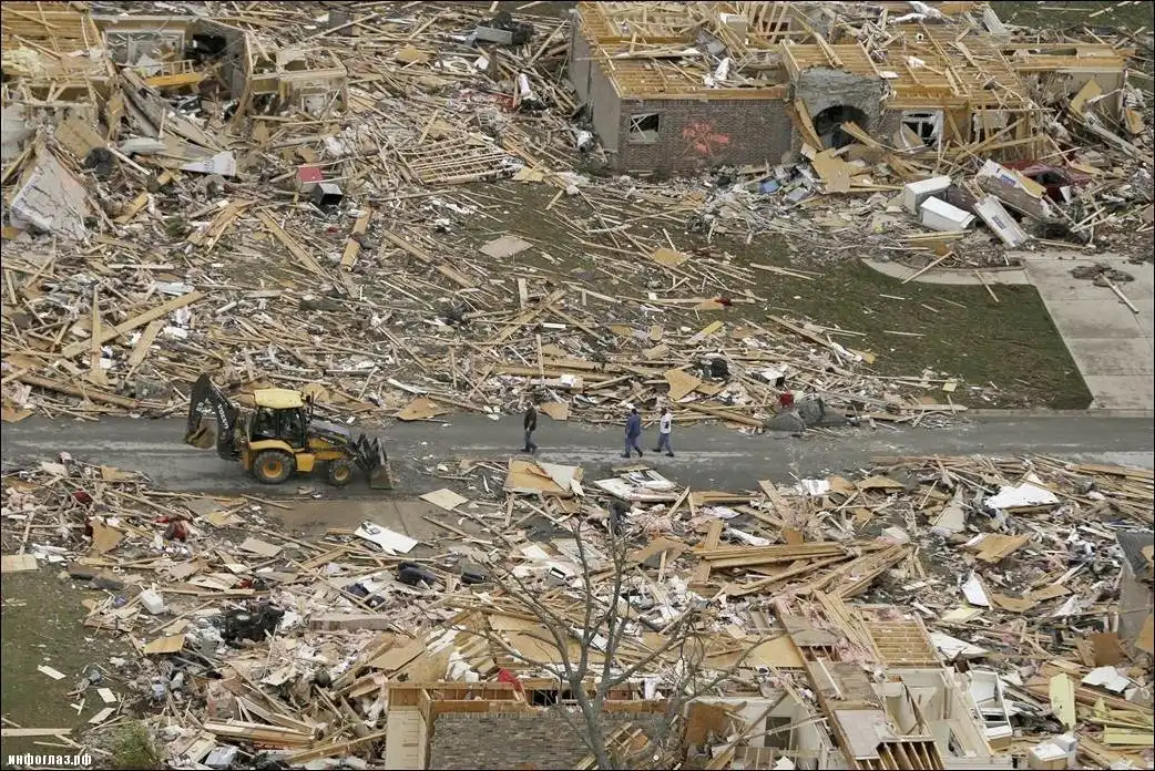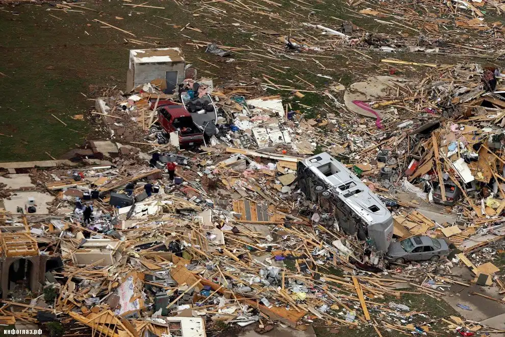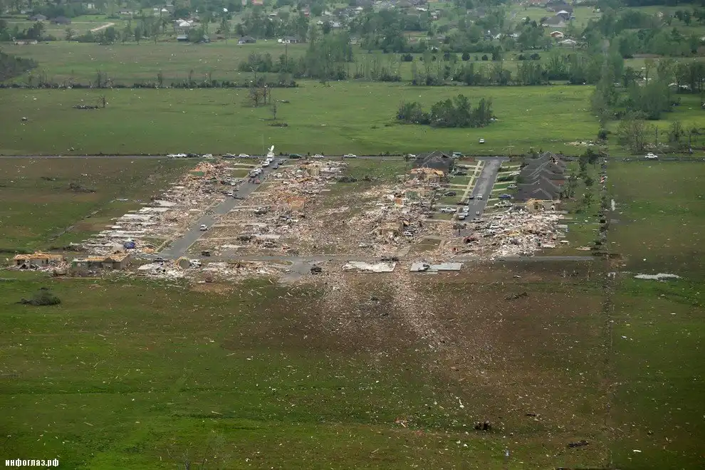 Больше всего пострадали Оклахома и Арканзас, где диаметр смерча достигал почти километра.