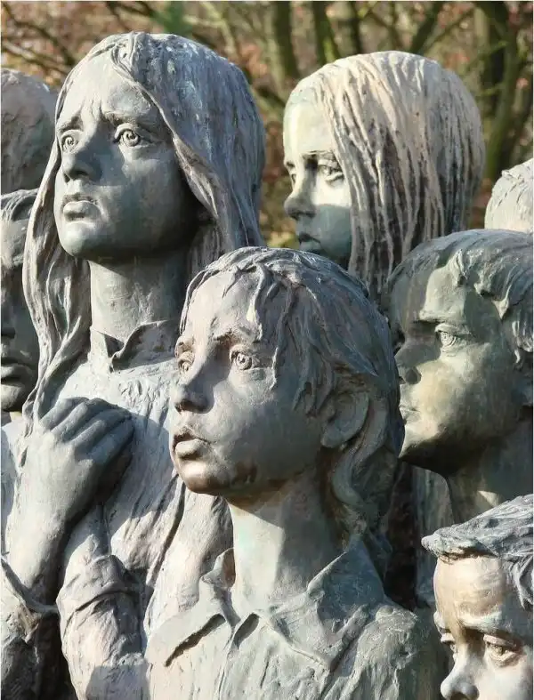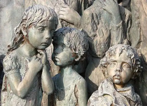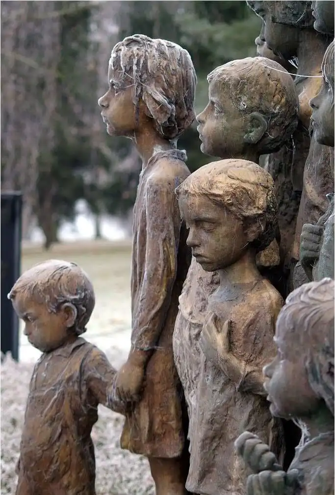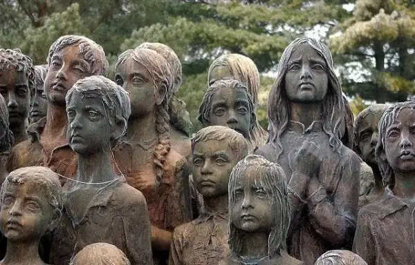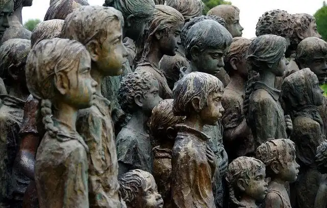 2 июля 1942 года, большинство детей городка Лидице, Чехословакия, а точнее 82 ребенка, были переданы в гестапо при городе Лодзи. Позже их перевезли в лагерь смерти в Хелмно. Там они были отравлены газом. Эта скульптура Мари Ючитиловой создана в знак памяти о них. Но что они (и их семьи) сделали?