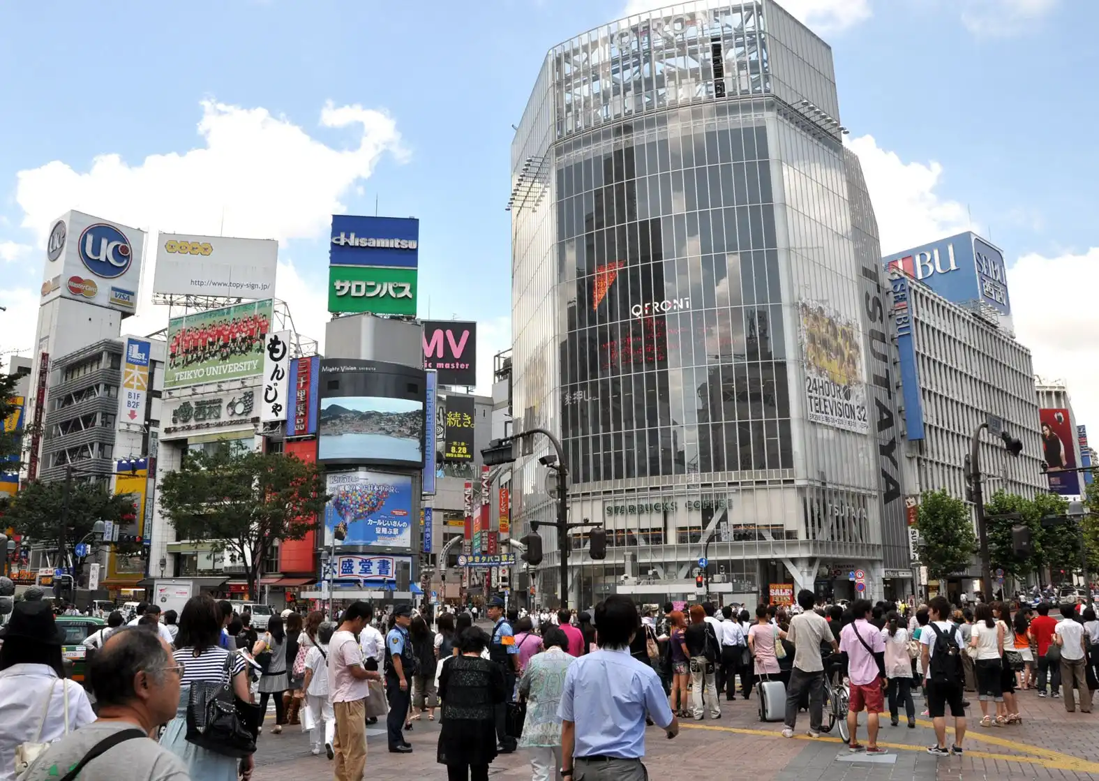 Следующая фотка – не час пик. Это нормальная, обычная картина на улицах Токио.