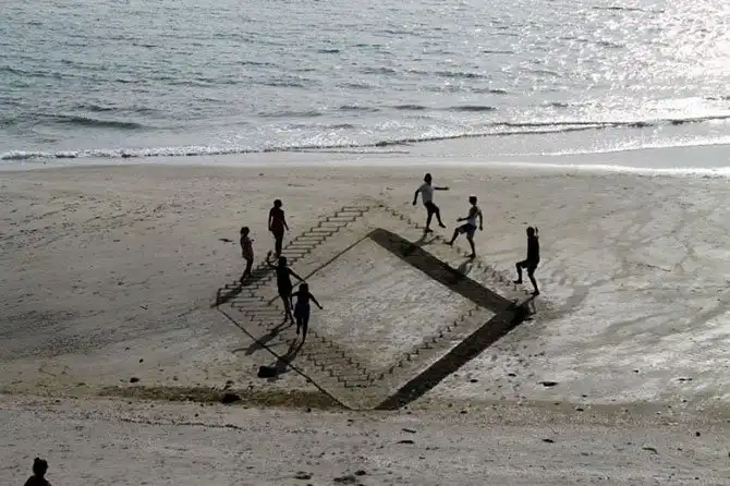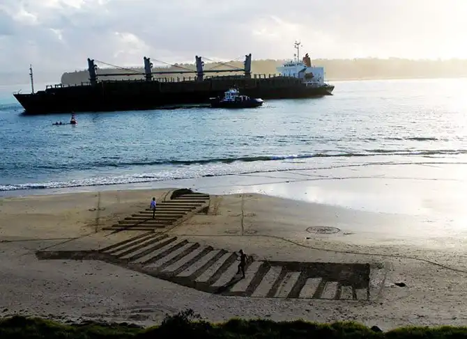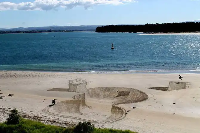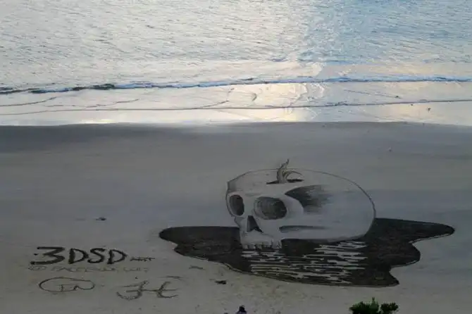 Именно так вышло с группой новозеландских художников. Вдохновившись 3D-рисунками на асфальте, они стали делать такие же, но… на песке! Прямо на берегу океана. И ничего, что к вечеру всю эту красоту смывает прилив. Мимолетность такого искусства делает его лишь прекраснее – хочется запомнить каждую деталь, пока оно «живо».