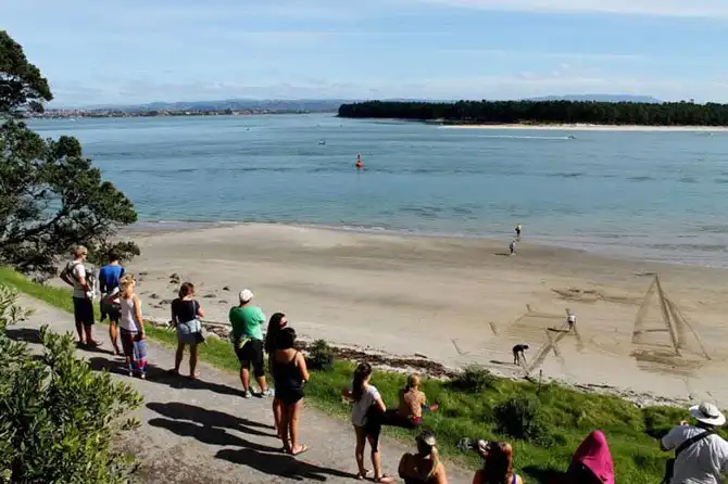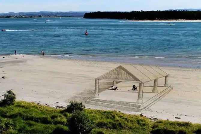 Удивительные творения новозеландских художников на берегу океана переносят посетителей пляжа в иное измерение