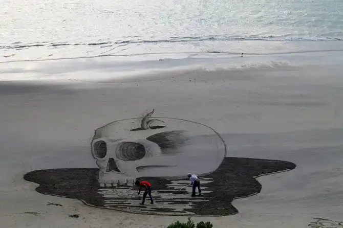 - Мы видели, как рисуют на песке другие художники. Это всегда были геометрические, плоские рисунки. Стандартные. Тогда мы подумали, что можем тоже творить на пляже, но объемно, в 3D, – рассказал Джейми Харкинс местному изданию The New Zealand Herald. – И мне даже нравится, что наши рисунки исчезают к вечеру, что их уносят волны. Это делает их хрупкими, непостоянными…