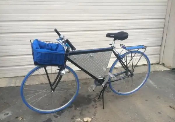 Какой интересный контейнер из нержавейки встроен в раму этого велосипеда. Интересно, что же там? Может быть набор инструментов? Или портативный сварочный аппарат?