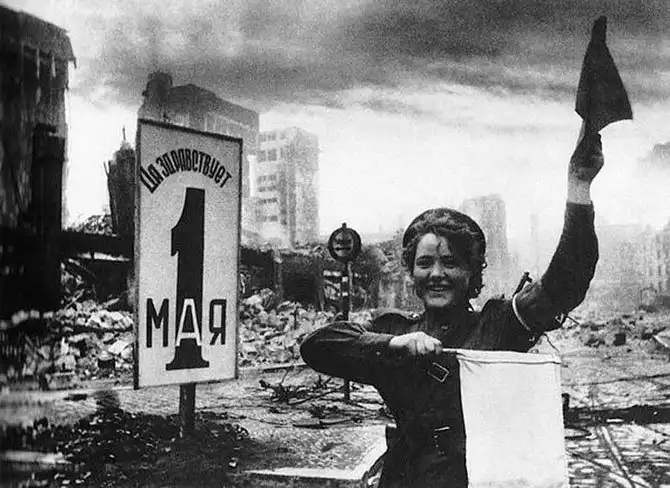 Регулировщица Мария Шальнева. Берлин. 1 мая 1945 г. Евгений Халдей.