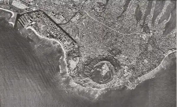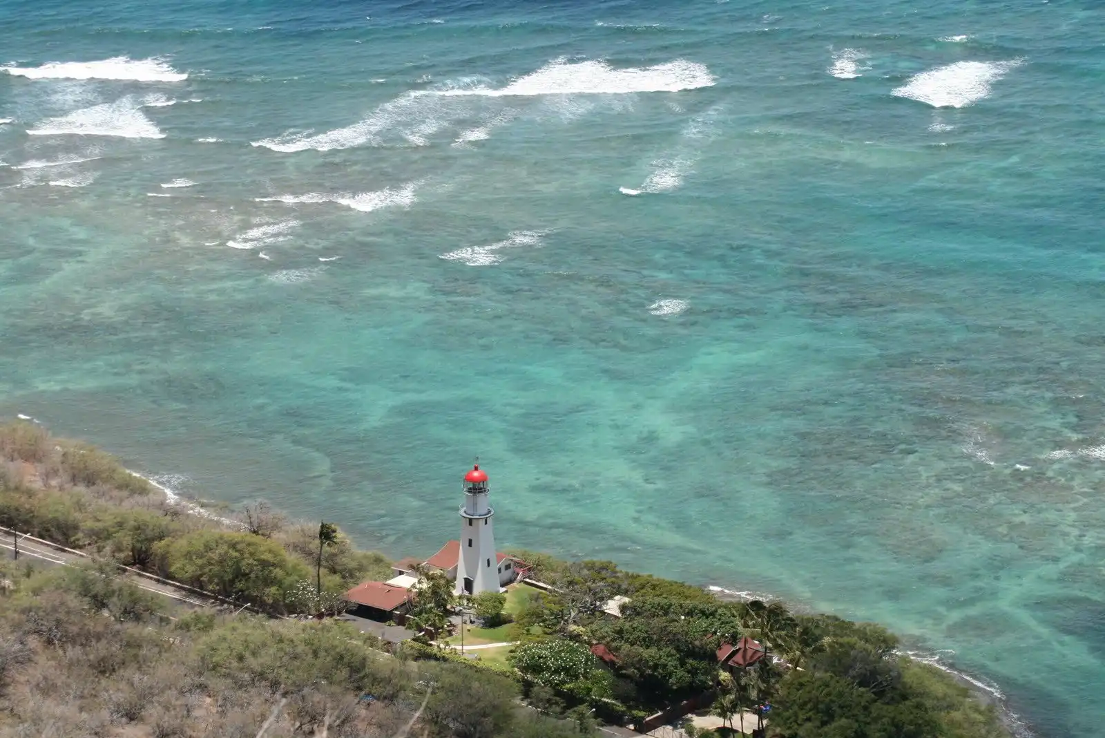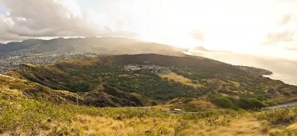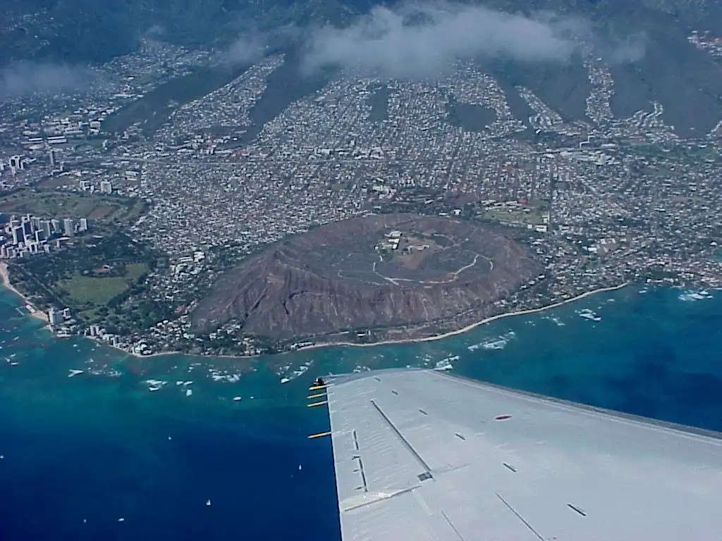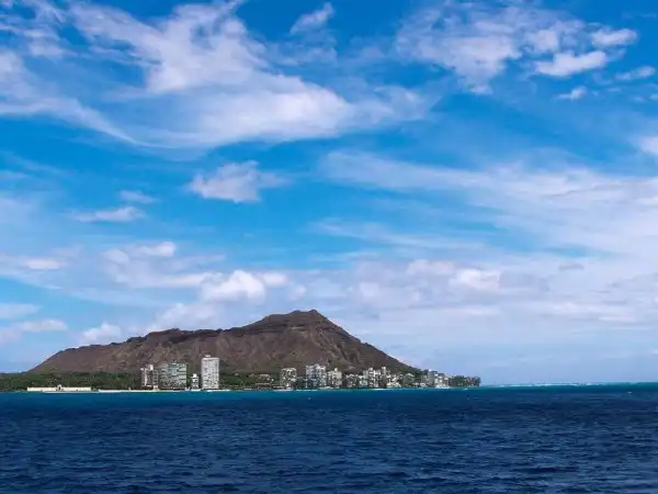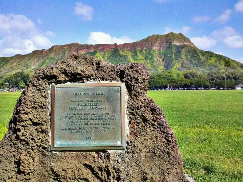 Даймонд-Хед, расположенный на восточном краю береговой линии Вайкики, является известным вулканическим кратером и признанной достопримечательностью Гавайев. Даймонд-Хед, он же алмазная или бриллиантовая голова, известен на гавайском как Le'ahi, означает "лоб (lea) из желтоперого тунца (ahi)". Он получил свое английское имя в конце 1700-ых, когда британские моряки увидели, что кристаллы кальцита искрились на свету и подумали, что они нашли алмазы.