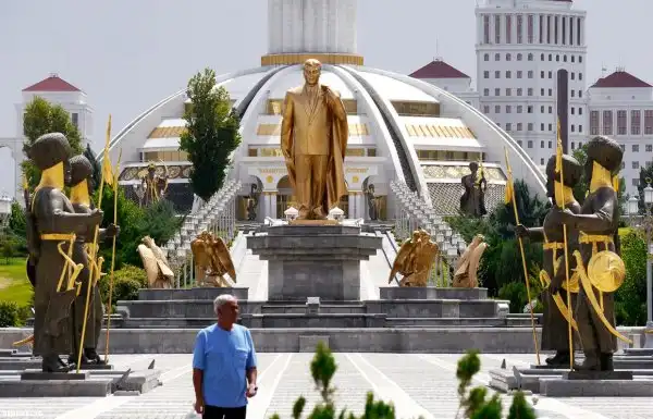 Один из многих золотых памятников Сапармурату Ниязову — «пожизненному президенту» Туркмении. Туркменбаши всегда носил модные дорогие костюмы. Его пальцы украшали огромные перстни с драгоценными камнями, возвышающимися над оправой. Он предпочитал изумруды (зелёный цвет — цвет ислама) и бриллианты.