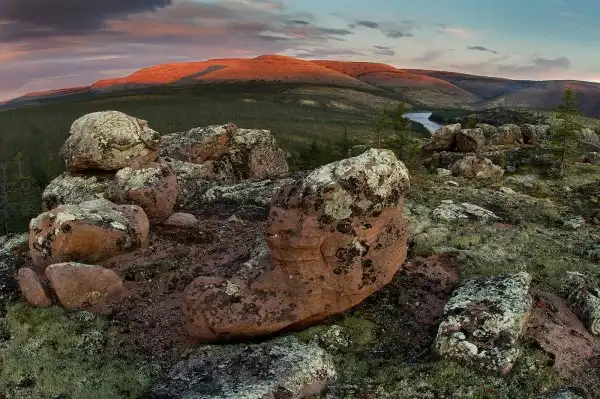 Древнейшее на Земле горное плато Анабар – одно из таких мест в Арктике. Находится оно на северо-востоке Среднесибирского плоскогорья, на территории, ограниченной с востока нижнем течением реки Лена, с запада – горным массивом плато Путорана. И представляет собой куполообразный выступ древнего фундамента Сибирской платформы, сложенный породами, возраст которых более 3 млрд лет. Особенную красоту плато придают широкие и глубокие речные долины, покрытые редкой лиственничной тайгой. На вершинах Анабара – горная тундра и многочисленные каменные развалы. Климат здесь отличается крайне суровыми, продолжительными зимами и прохладным летом.